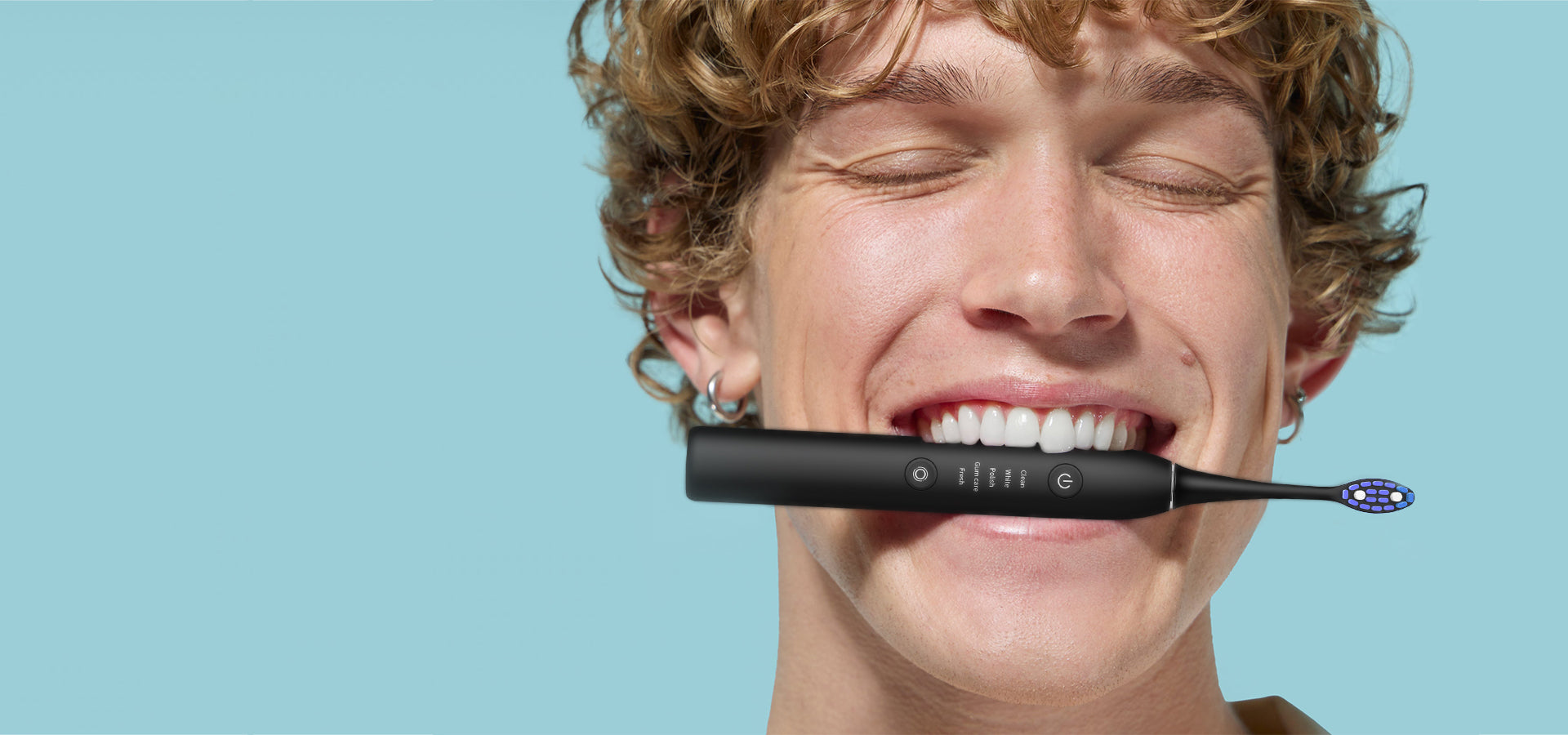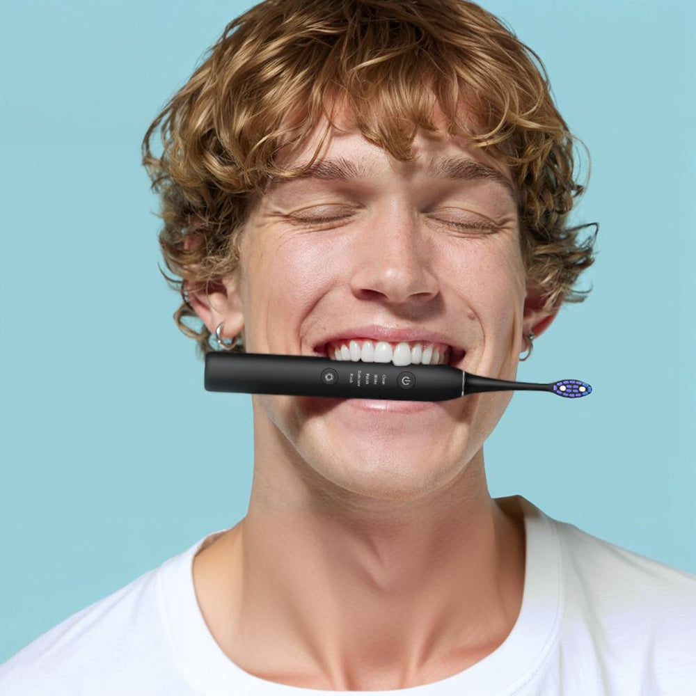 Brush offers Gentle Mode for sensitive gums, Whitening Mode for surface stains, and Intensive Mode for a deep clean.